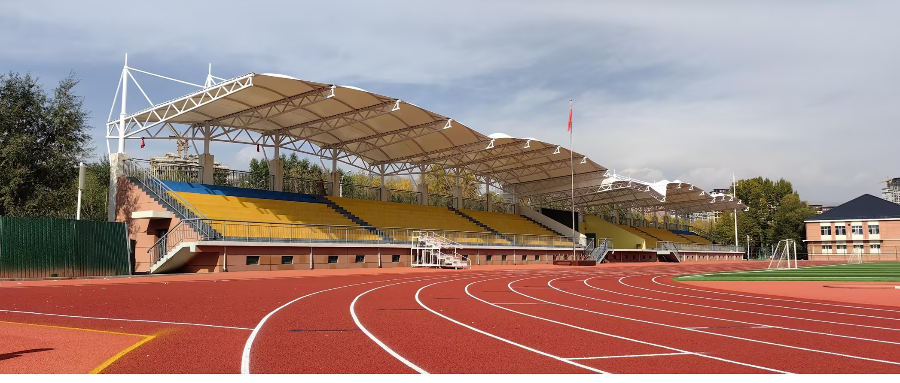 青海省海東市第三中學運動場看臺膜結構工程,工程體量包含看臺及主席臺的雨棚安裝,整體造型美觀,結構穩(wěn)固,視野無遮擋,大大提升了校園環(huán)境。
